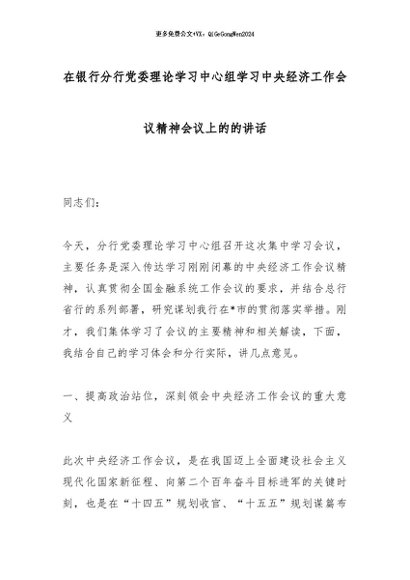 【七哥公文】2025年:在银行分行党委理论学习中心组学习中央经济工作会议精神会议上的的讲话_副本+更多免费公文+VX:QiGeGongWen2024