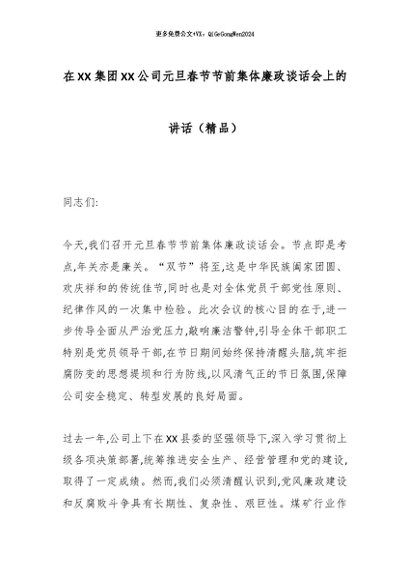 【七哥公文】2025年:在XX集团XX公司元旦春节节前集体廉政谈话会上的讲话(精品)_副本+更多免费公文+VX:QiGeGongWen2024