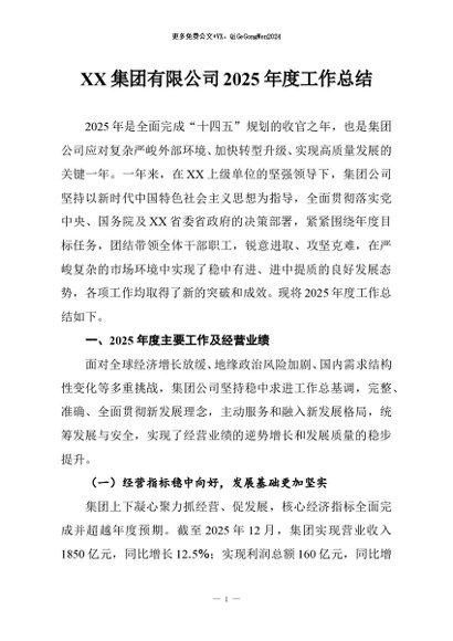 / 【七哥公文】2025年:XX集团有限公司2025年度工作总结+更多免费公文+VX:QiGeGongWen2024