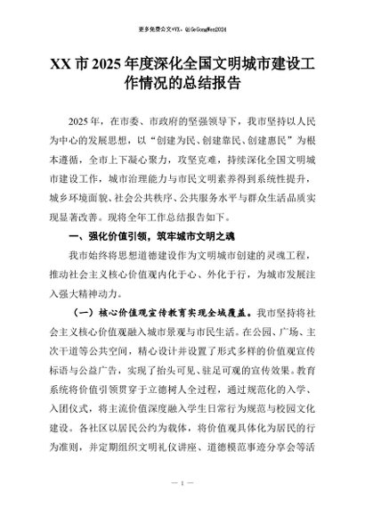 【七哥公文】2025年:XX市2025年度深化全国文明城市建设工作情况的总结报告+更多免费公文+VX:QiGeGongWen2024