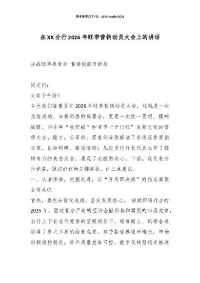 【七哥公文】2025年:在XX分行2026年旺季营销动员大会上的讲话_副本+更多免费公文+VX:QiGeGongWen2024