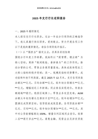 / 【七哥公文】2025年:2025年支行行长述职报告_副本+更多免费公文+VX:QiGeGongWen2024
