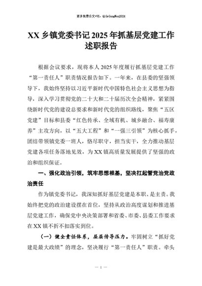 / 【七哥公文】2025年:XX乡镇党委书记2025年抓基层党建工作述职报告+更多免费公文+VX:QiGeGongWen2024