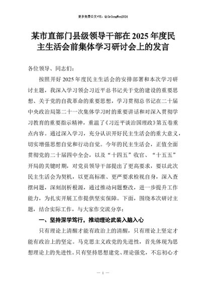 【七哥公文】2026年:某市直部门县级领导干部在2025年度民主生活会前集体学习研讨会上的发言_副本+更多免费公文+VX:QiGeGongWen2024