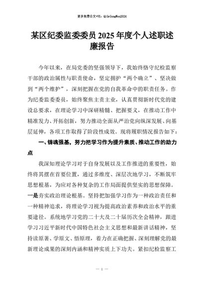 / 【七哥公文】2026年:某区纪委监委委员2025年度个人述职述廉报告_副本+更多免费公文+VX:QiGeGongWen2024