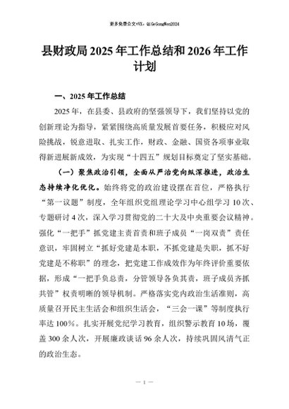 【七哥公文】2026年:县财政局2025年工作总结和2026年工作计划docx_副本+更多免费公文+VX:QiGeGongWen2024