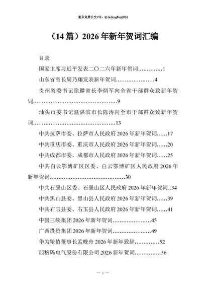 / 【七哥公文】2026年:(14篇)2026年新年贺词汇编+更多免费公文+VX:QiGeGongWen2024