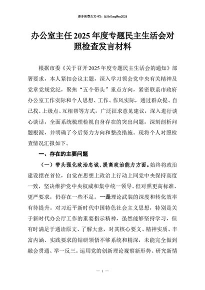 【七哥公文】2026年:办公室主任2025年度专题民主生活会对照检查发言材料_副本+更多免费公文+VX:QiGeGongWen2024