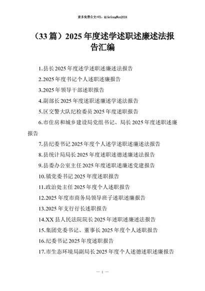 【七哥公文】2026年:(33篇)2025年度述学述职述廉述法报告汇编_副本+更多免费公文+VX:QiGeGongWen2024