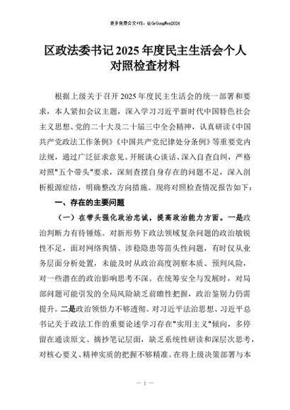 【七哥公文】2026年:区政法委书记2025年度民主生活会个人对照检查材料_副本+更多免费公文+VX:QiGeGongWen2024