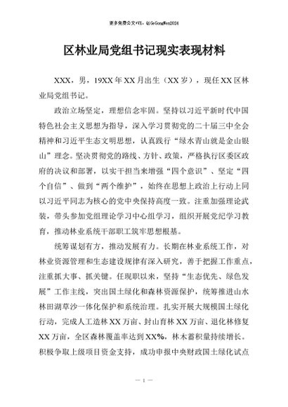 【七哥公文】2026年:区林业局党组书记现实表现材料+更多免费公文+VX:QiGeGongWen2024