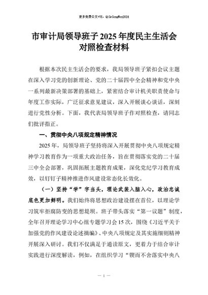 【七哥公文】2026年:市审计局领导班子2025年度民主生活会对照检查材料_副本+更多免费公文+VX:QiGeGongWen2024