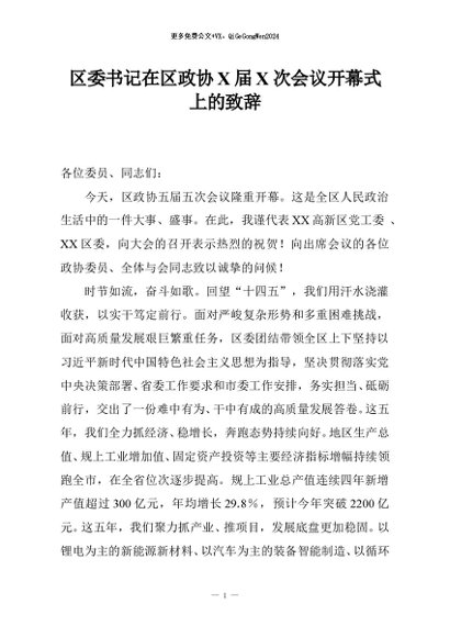 / 【七哥公文】2026年:区委书记在区政协X届X次会议开幕式上的致辞+更多免费公文+VX:QiGeGongWen2024