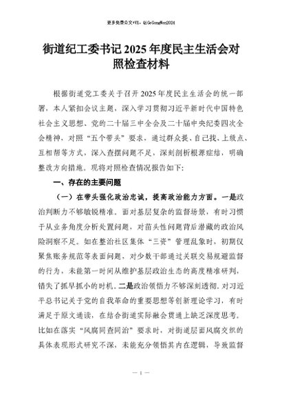 【七哥公文】2026年:街道纪工委书记2025年度民主生活会对照检查材料_副本+更多免费公文+VX:QiGeGongWen2024