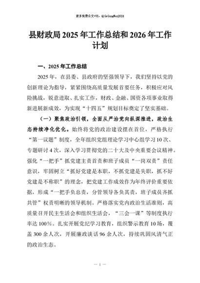 【七哥公文】2026年:县财政局2025年工作总结和2026年工作计划_副本+更多免费公文+VX:QiGeGongWen2024