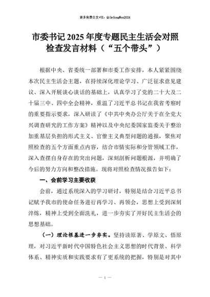 【七哥公文】2026年:市委书记2025年度专题民主生活会对照检查发言材料(“五个带头”)_副本+更多免费公文+VX:QiGeGongWen2024