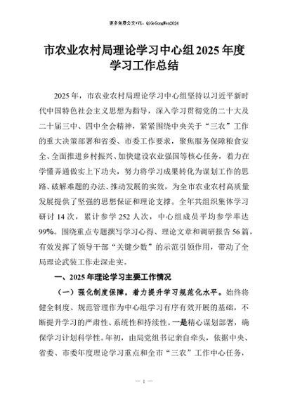 【七哥公文】2026年:市农业农村局理论学习中心组2025年度学习工作总结+更多免费公文+VX:QiGeGongWen2024