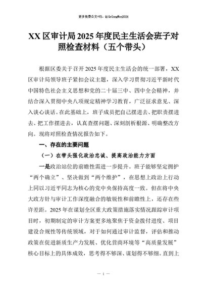 【七哥公文】2026年:XX区审计局2025年度民主生活会班子对照检查材料(五个带头)_副本+更多免费公文+VX:QiGeGongWen2024