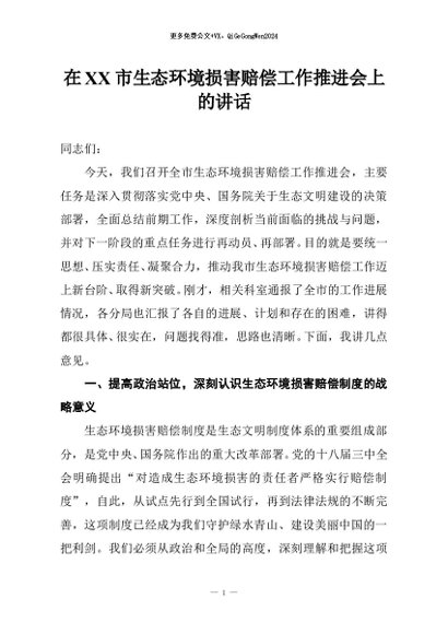 / 【七哥公文】2026年:在XX市生态环境损害赔偿工作推进会上的讲话+更多免费公文+VX:QiGeGongWen2024