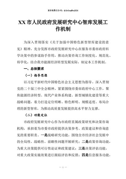 【七哥公文】2026年:XX市人民政府发展研究中心智库发展工作机制+更多免费公文+VX:QiGeGongWen2024