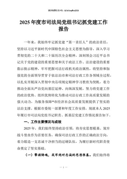 【七哥公文】2026年:2025年度市司法局党组书记抓党建工作报告_副本+更多免费公文+VX:QiGeGongWen2024