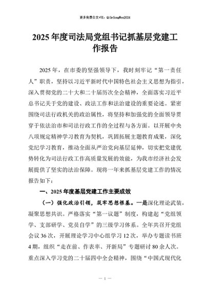 【七哥公文】2026年:2025年度司法局党组书记抓基层党建工作报告_副本+更多免费公文+VX:QiGeGongWen2024