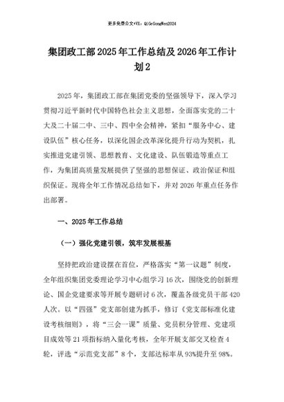 【七哥公文】2026年:集团政工部2025年工作总结及2026年工作计划2+更多免费公文+VX:QiGeGongWen2024