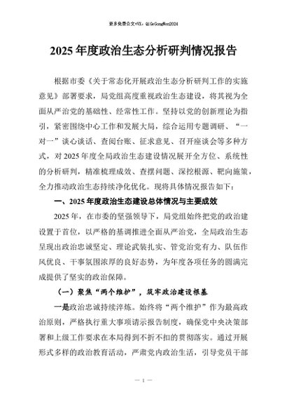 / 【七哥公文】2026年:2025年度政治生态分析研判情况报告+更多免费公文+VX:QiGeGongWen2024
