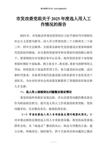 / 【七哥公文】2026年:市发改委党组关于2025年度选人用人工作情况的报告+更多免费公文+VX:QiGeGongWen2024