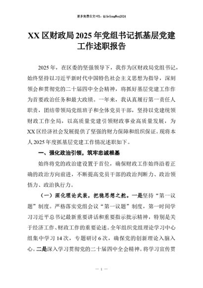 【七哥公文】2026年:XX区财政局2025年党组书记抓基层党建工作述职报告+更多免费公文+VX:QiGeGongWen2024