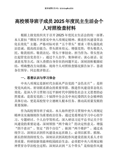 【七哥公文】2026年:高校领导班子成员2025年度民主生活会个人对照检查材料+更多免费公文+VX:QiGeGongWen2024