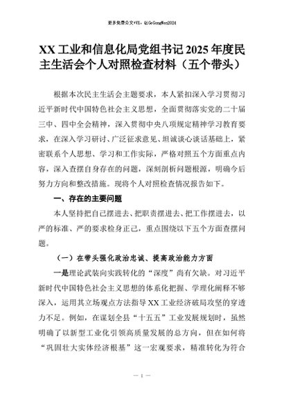 【七哥公文】2026年:XX工业和信息化局党组书记2025年度民主生活会个人对照检查材料(五个带头)_副本+更多免费公文+VX:QiGeGongWen2024