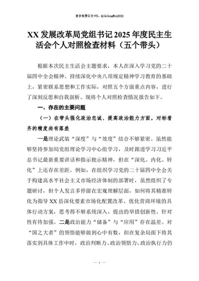 【七哥公文】2026年:XX发展改革局党组书记2025年度民主生活会个人对照检查材料(五个带头)_副本+更多免费公文+VX:QiGeGongWen2024