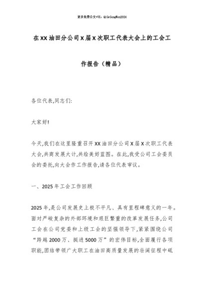 【七哥公文】2026年:在XX油田分公司X届X次职工代表大会上的工会工作报告(精品)_副本+更多免费公文+VX:QiGeGongWen2024