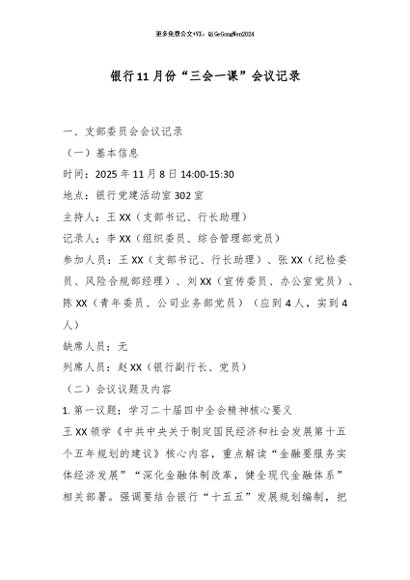 / 【七哥公文】2026年:银行11月份“三会一课”会议记录_副本+更多免费公文+VX:QiGeGongWen2024