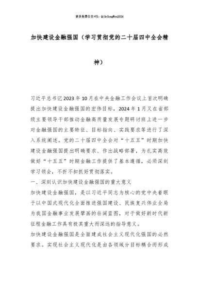 【七哥公文】2026年:加快建设金融强国(学习贯彻党的二十届四中全会精神)_副本+更多免费公文+VX:QiGeGongWen2024