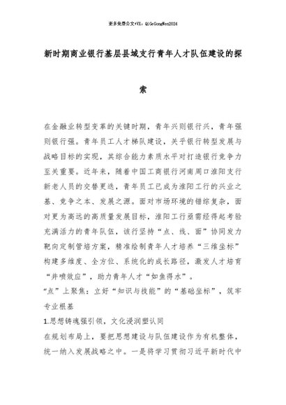【七哥公文】2026年:新时期商业银行基层县域支行青年人才队伍建设的探索_副本+更多免费公文+VX:QiGeGongWen2024