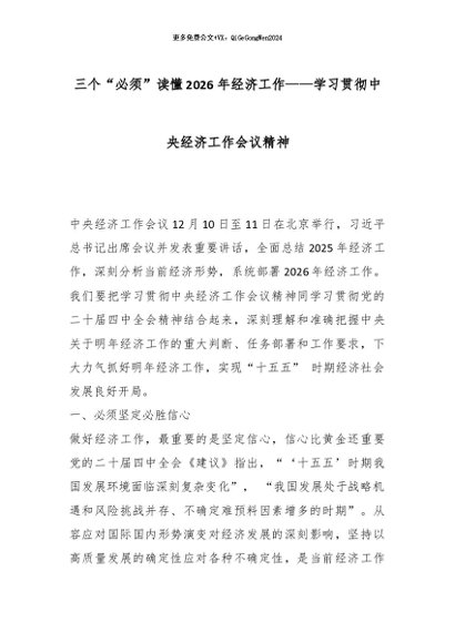 【七哥公文】2026年:党课:三个“必须”读懂2026年经济工作——学习贯彻中央经济工作会议精神_副本+更多免费公文+VX:QiGeGongWen2024