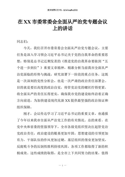 / 【七哥公文】2026年:在XX市委常委会全面从严治党专题会议上的讲话+更多免费公文+VX:QiGeGongWen2024
