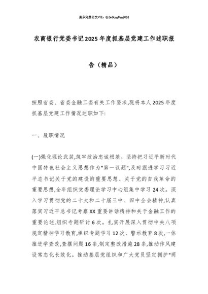 【七哥公文】2026年:农商银行党委书记2025年度抓基层党建工作述职报告(精品)_副本+更多免费公文+VX:QiGeGongWen2024