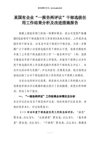 【七哥公文】2026年:某国有企业“一报告两评议”干部选拔任用工作结果分析及改进措施报告+更多免费公文+VX:QiGeGongWen2024