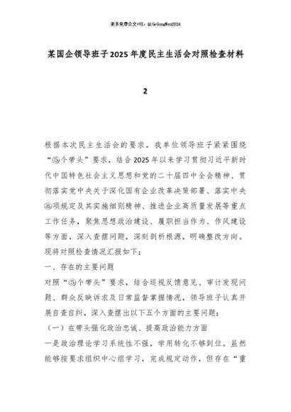 【七哥公文】2026年:某国企领导班子2025年度民主生活会对照检查材料2_副本+更多免费公文+VX:QiGeGongWen2024