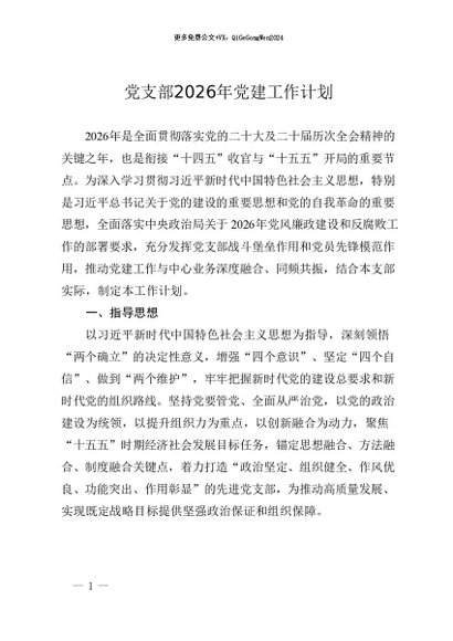 / 【七哥公文】2026年:党支部2026年党建工作计划+更多免费公文+VX:QiGeGongWen2024