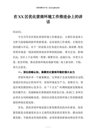 / 【七哥公文】2026年:在XX区优化营商环境工作推进会上的讲话+更多免费公文+VX:QiGeGongWen2024