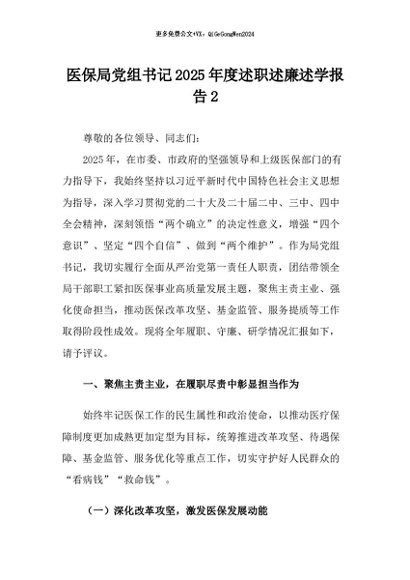 / 【七哥公文】2026年:医保局党组书记2025年度述职述廉述学报告2+更多免费公文+VX:QiGeGongWen2024