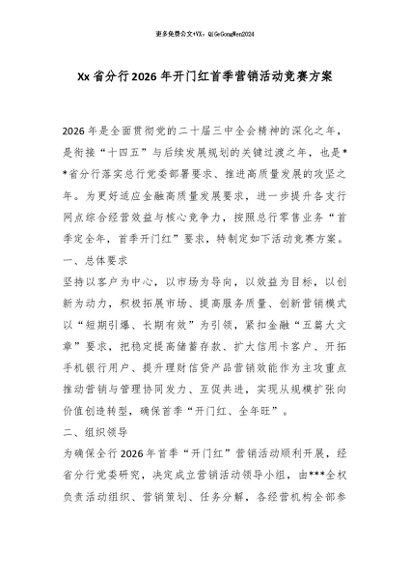 【七哥公文】2026年:Xx省分行2026年开门红首季营销活动竞赛方案_副本+更多免费公文+VX:QiGeGongWen2024