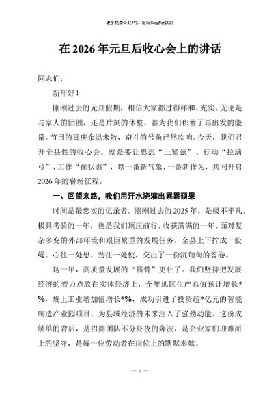 / 【七哥公文】2026年:在2026年元旦后收心会上的讲话+更多免费公文+VX:QiGeGongWen2024