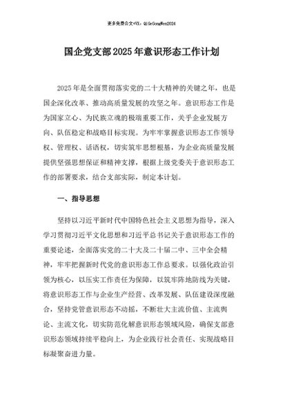 / 【七哥公文】2026年:国企党支部2025年意识形态工作计划+更多免费公文+VX:QiGeGongWen2024