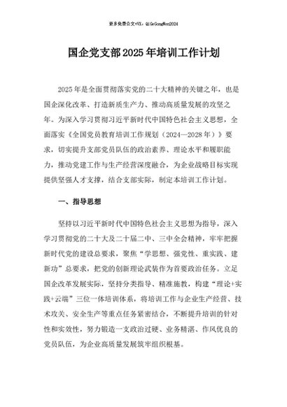 / 【七哥公文】2026年:国企党支部2025年培训工作计划+更多免费公文+VX:QiGeGongWen2024