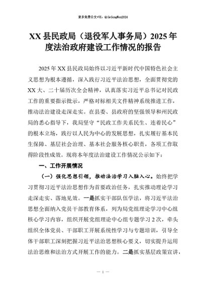 【七哥公文】2026年:XX县民政局(退役军人事务局)2025年度法治政府建设工作情况的报告+更多免费公文+VX:QiGeGongWen2024